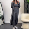 Gestricktes Stretch-Tanktop, Leggings mit hoher Taille und lange Strickjacke für Frauen, 3-teiliges Set