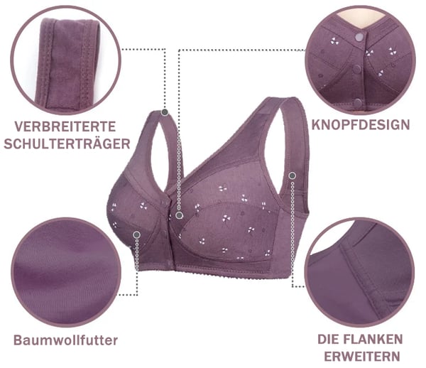 Unser Knopf-BH wurde sorgfältig entwickelt, um viel mehr Komfort und Unterstützung zu bieten als ein herkömmlicher BH.