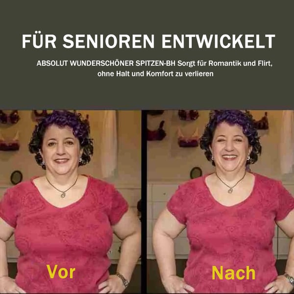 " Ich habe Dutzende von BHs ausprobiert, aber keiner hat besser funktioniert als dieser. In diesem Alter ist es jedes Mal ein Kampf, wenn ich ausgehen und einen BH tragen muss. Deshalb ist dieser BH mit Frontreißverschluss ein wahrer Segen für mich. Ich kann ihn ganz einfach schließen, ohne jedes Mal meine Hand auf dem Rücken zu strapazieren. Ich spüre seinen Komfort jedes Mal, wenn ich ihn trage! Ich danke euch von ganzem Herzen!" - Rossi Jones