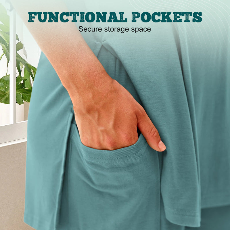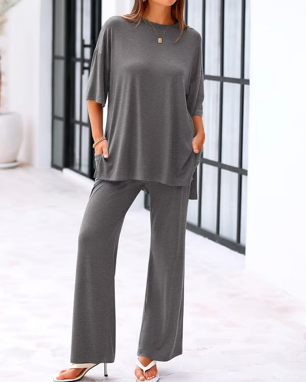 đ„LĂ€ssiges 2-teiliges Set aus locker sitzendem Kurzarmoberteil und weit geschnittener Hose mit Taschen