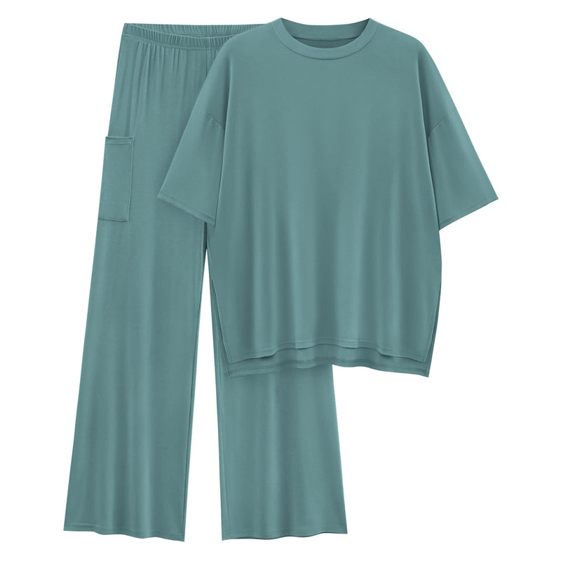 Paket beinhaltet : 1 à LÀssiges Kurzarmoberteil und langes Hosenset