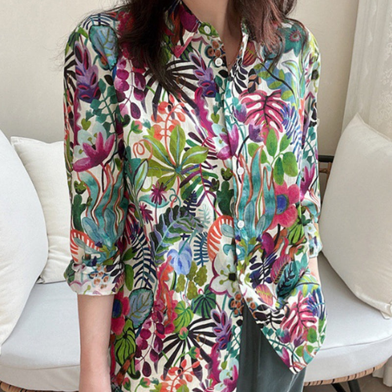EINZIGARTIGES DRUCKDESIGN IM RETRO-STRANDSTIL – Das Shirt verfügt über lebendige und energiegeladene Drucke mit tropischen Regenwaldpflanzen, die die Essenz der klassischen Strandkultur einfangen. Diese Muster sind nicht nur retro, sondern haben auch einen modernen Touch und verleihen Ihrer Garderobe einen zeitlosen Reiz.
