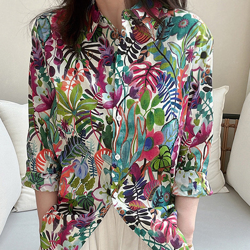 Lässiges Langarmhemd im Retro-Strandstil mit Aufdruck
