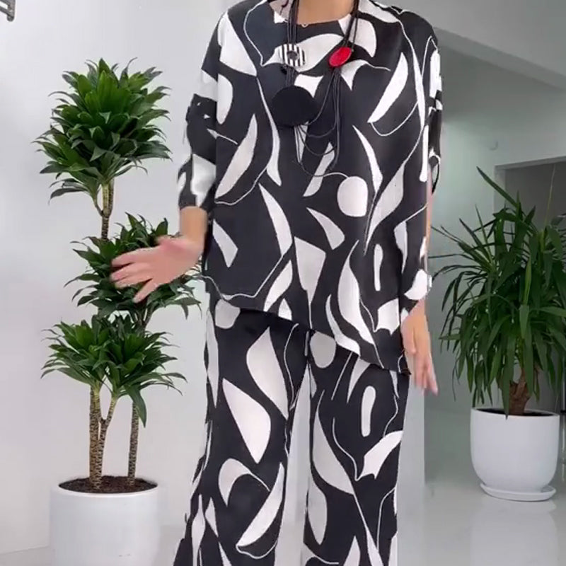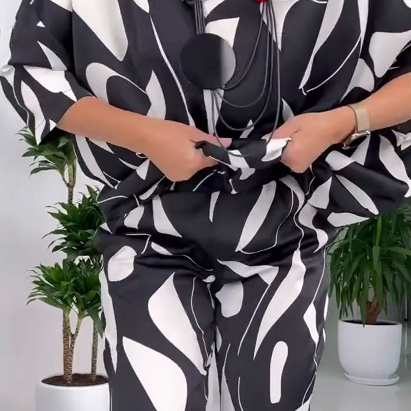 VIELSEITIG VON TAG BIS NACHT – Wechseln Sie problemlos vom Kaffee-Date zum Abendspaziergang mit diesem einfach zu kombinierenden Set. Der schwarz-weiße abstrakte Print lässt sich ideal mit Sneakern, Sandalen oder Lagenlooks mit Jacken stylen – ganz nach Stimmung.