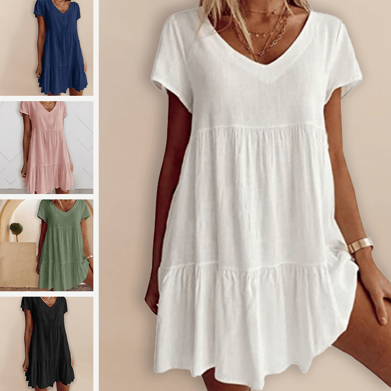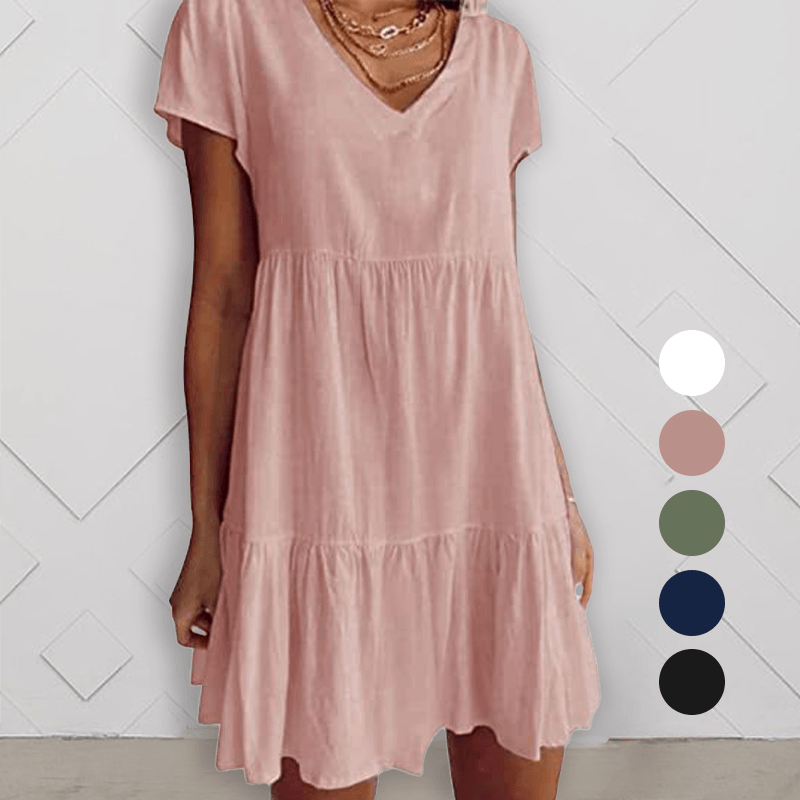 💝Heiße Verkäufe 49 % RABATT💝Baumwollmischung V-Ausschnitt Casual Kurzarm Webkleid😍