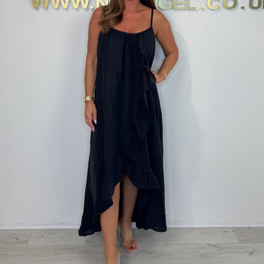 🌸Lieferumfang: 1x Damenkleid mit Spaghettiträgern und asymmetrischem Saum