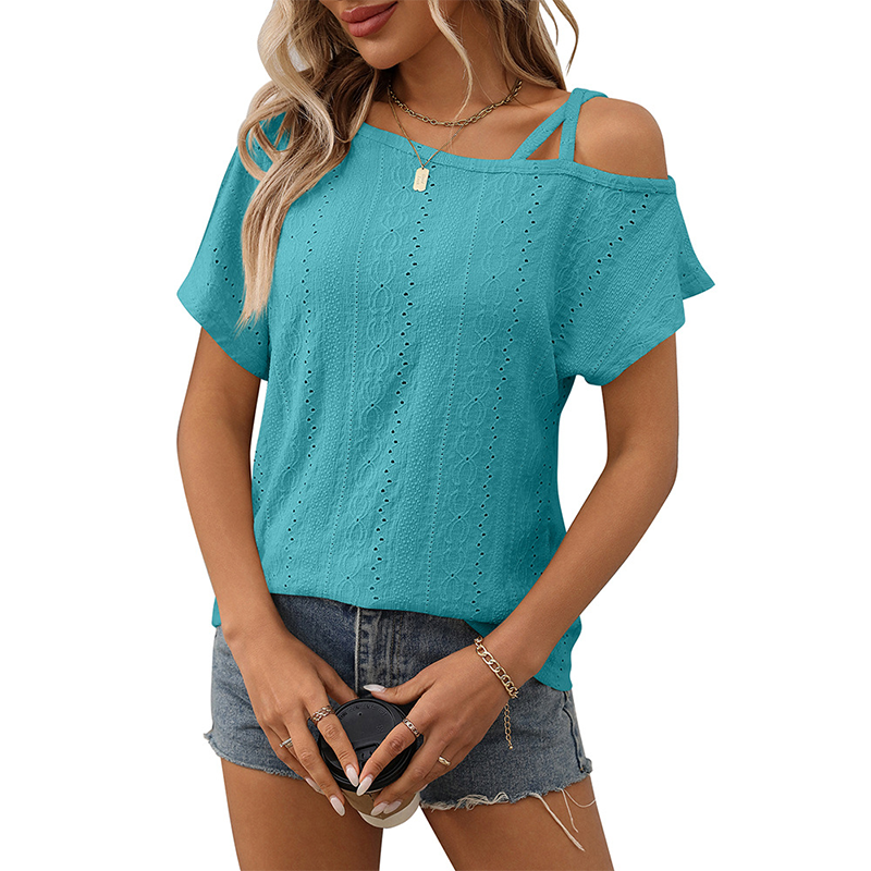Lieferumfang: 1 x modisches, ausgehöhltes, einfarbiges, kurzärmeliges Damenoberteil