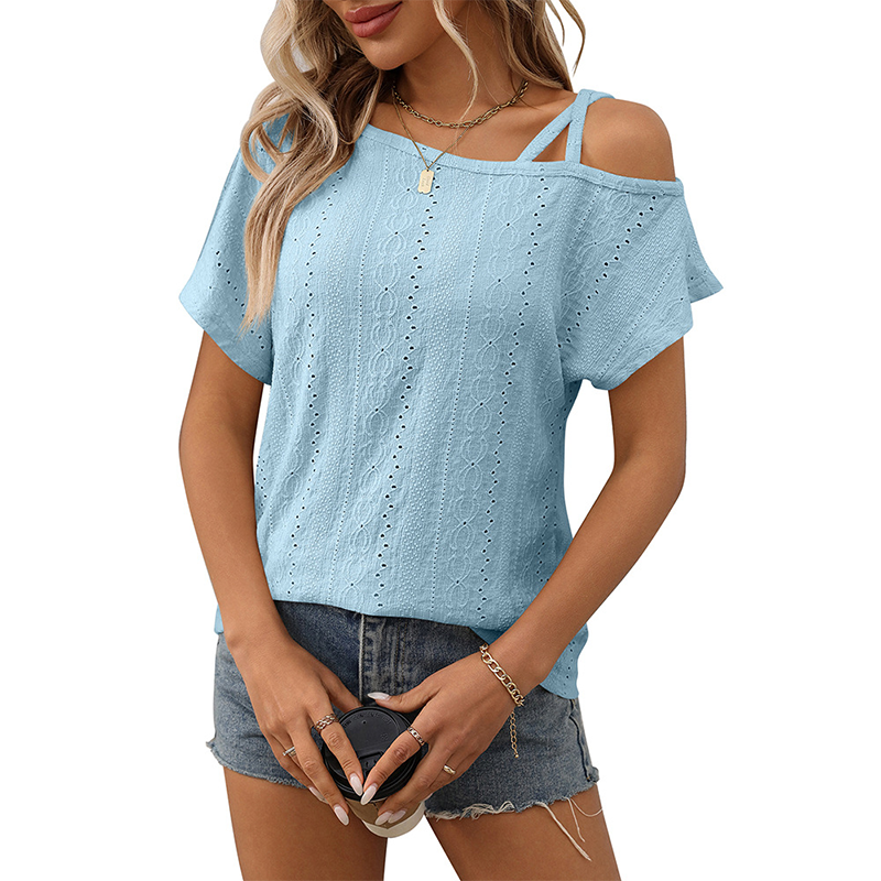 🔥Modisches, ausgehöhltes, einfarbiges Kurzarm-Oberteil für Damen