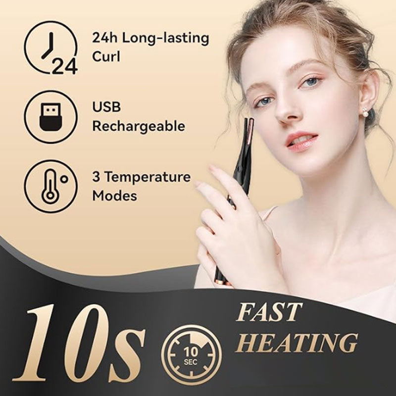 ATTRACTIVE AND FAST CURLING: The lash curler heats up quickly in just 10 seconds, and its curved head creates perfect, natural curls that last up to 24 hours.