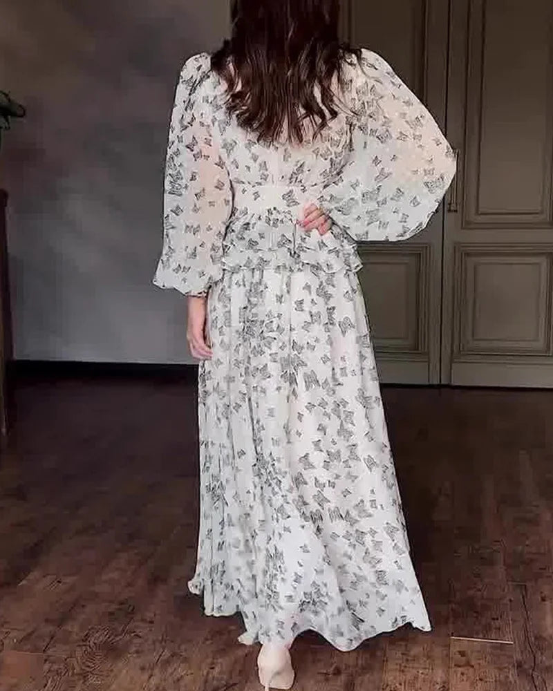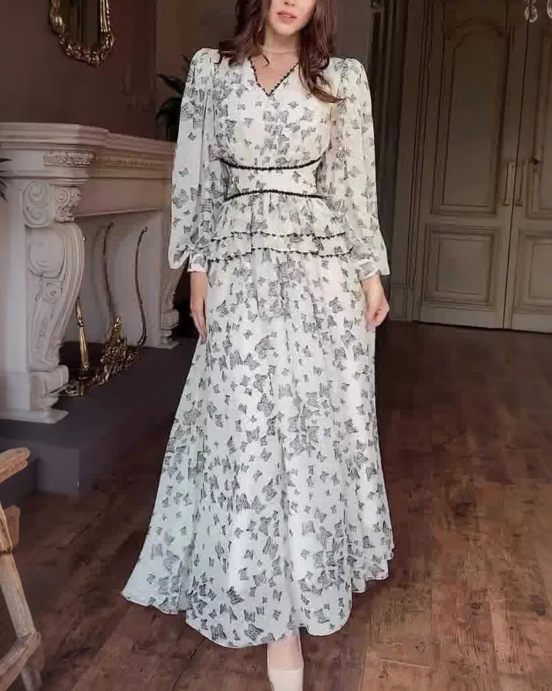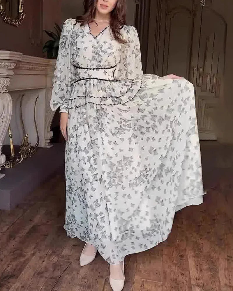 Paket beinhaltet: 1 * Elegantes bedrucktes Taillen-V-Ausschnitt-Kleid