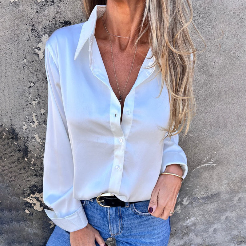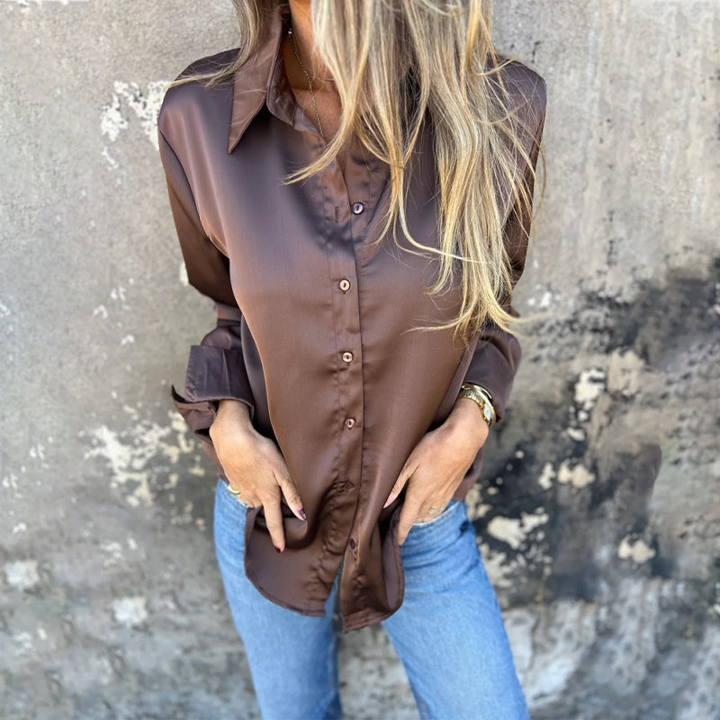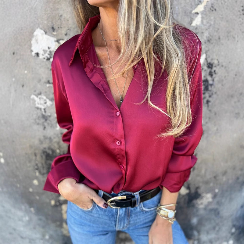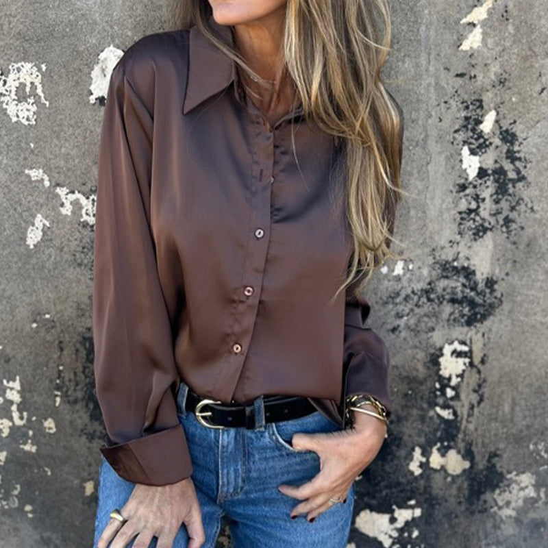 Lieferumfang: 1 × Elegantes Satinhemd mit langen Ärmeln