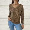 Stylisches langärmeliges Top mit V-Ausschnitt und Leopardenmuster