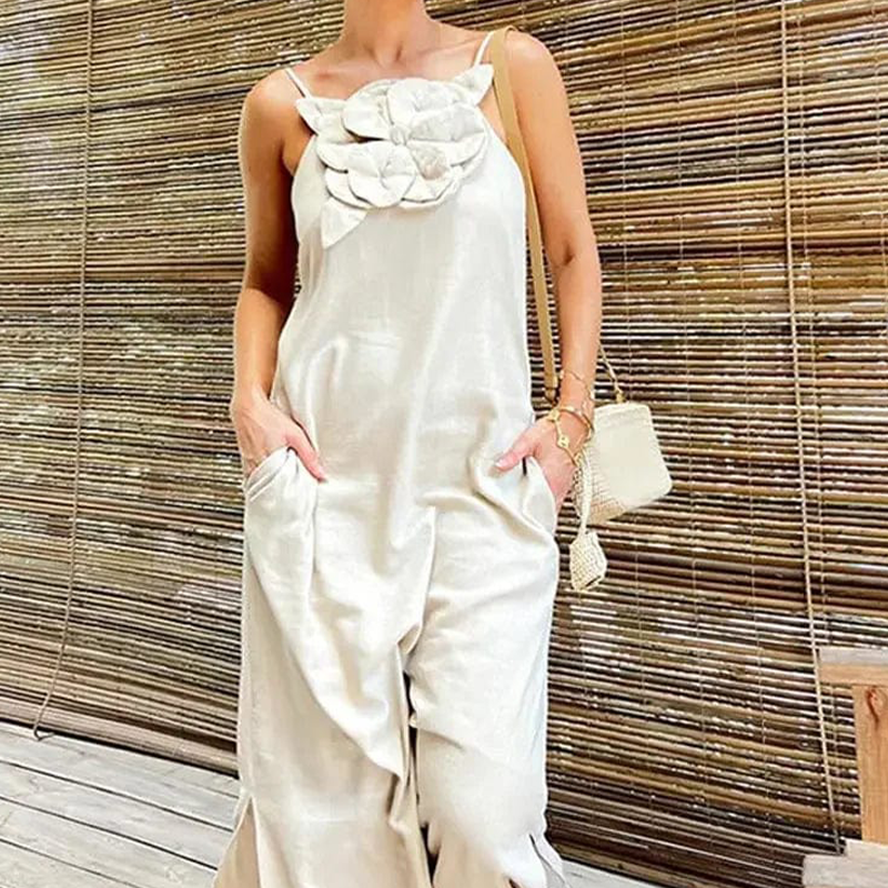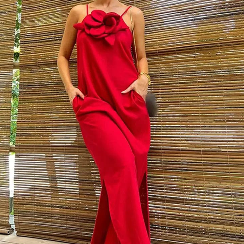 Elegantes Maxikleid mit Spaghettiträgern und floralem Akzent für Damen