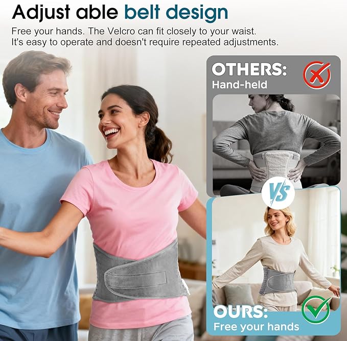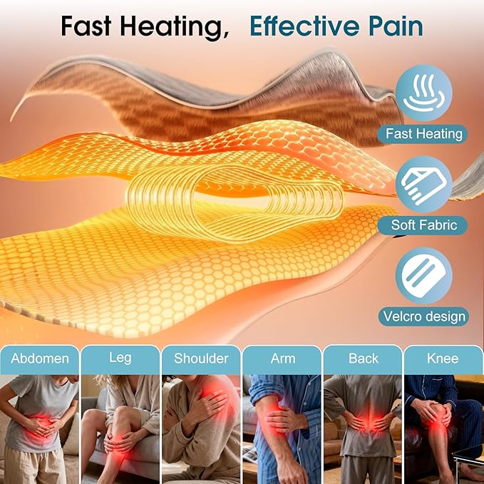 Komfort für den ganzen Körper: Dieser elektrische Heizgürtel ist so konzipiert, dass er sich um mehrere Körperbereiche legen lässt: unteren Rücken, Bauch, Schultern, Nacken, Arme und Waden. Er eignet sich hervorragend zur Muskelentspannung, bei Menstruationsbeschwerden, Gelenkschmerzen, Muskelkater und vielem mehr und erfüllt somit verschiedene Bedürfnisse.