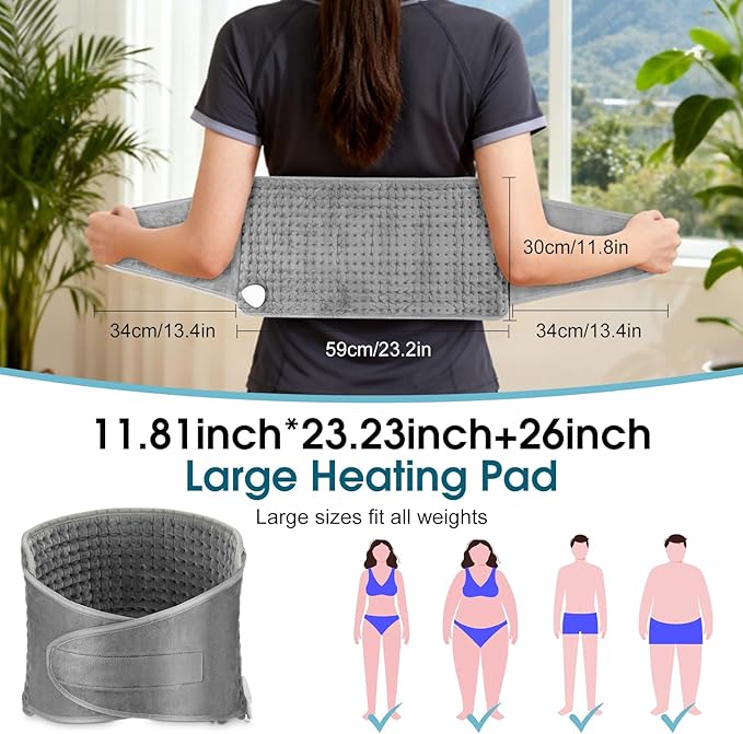 Anpassbare Passform für alle: Das beheizbare Rundum-Kissen verfügt über starke Klettverschlüsse und ist extra lang (passend für Taillenumfänge bis zu 127 cm). Es lässt sich leicht an- und ausziehen und anpassen und bietet Männern und Frauen einen sicheren Halt. Es schmiegt sich angenehm an den Körper an, auch bei körperlicher Aktivität.