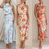 ✨Love In The Garden Floral Halter Neck Elastische Taille Maxi Kleid