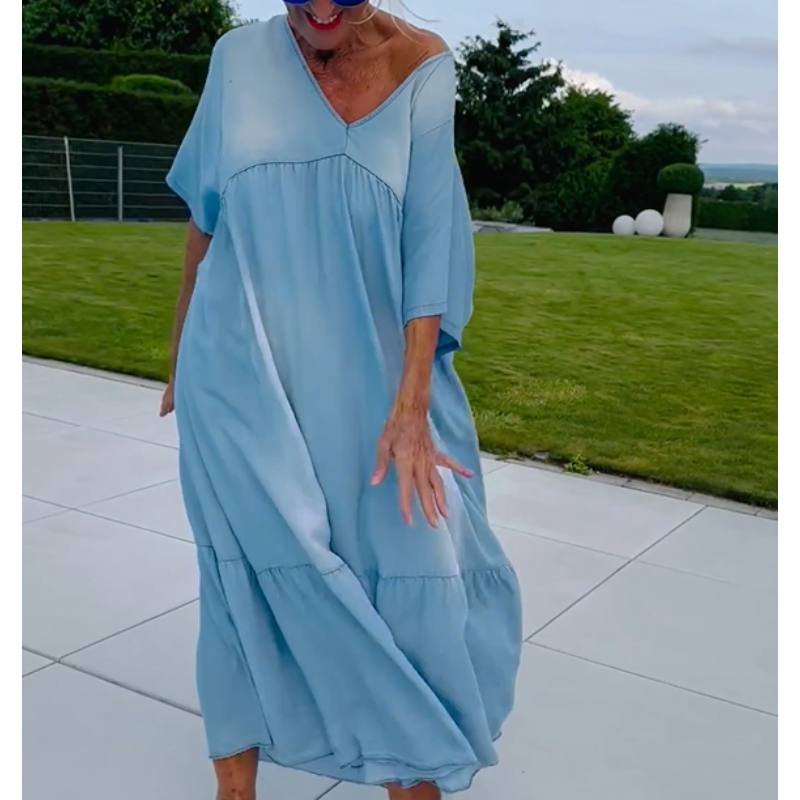 Lieferumfang: 1 x lässiges Maxikleid mit V-Ausschnitt für Damen.