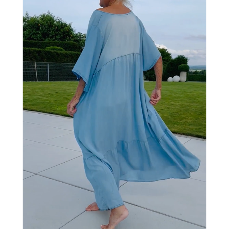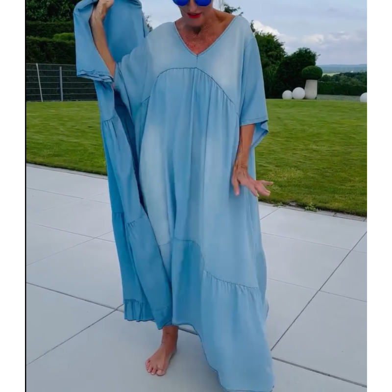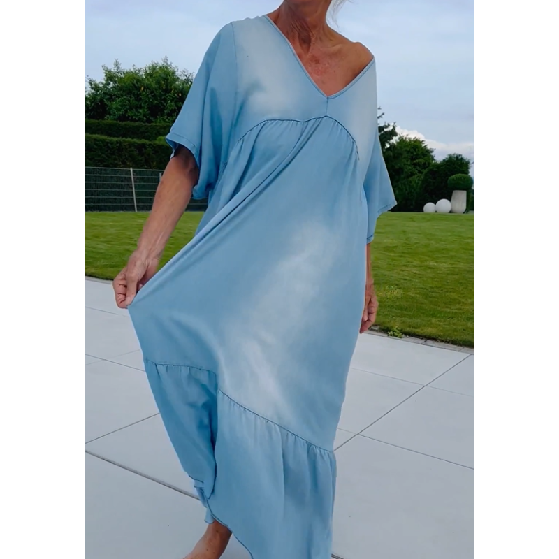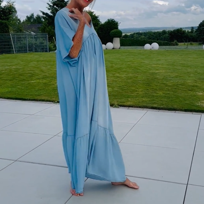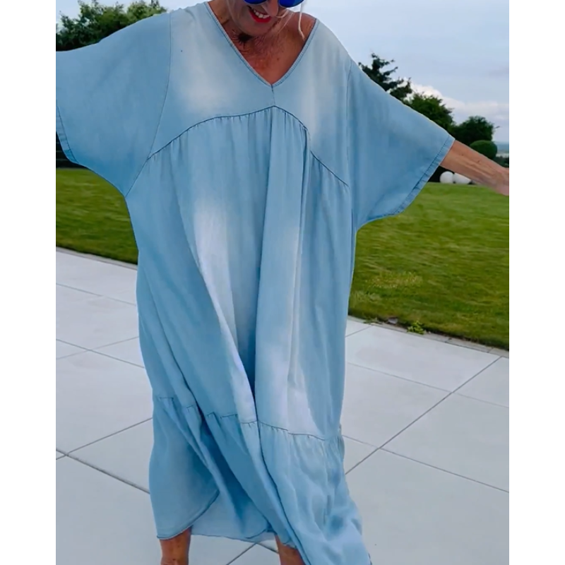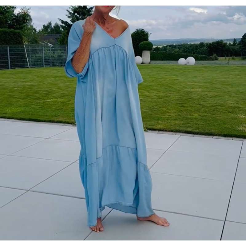 Lässiges, lockeres Maxikleid mit V-Ausschnitt für Damen