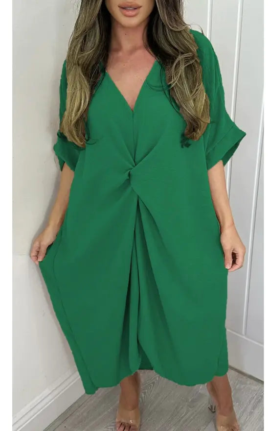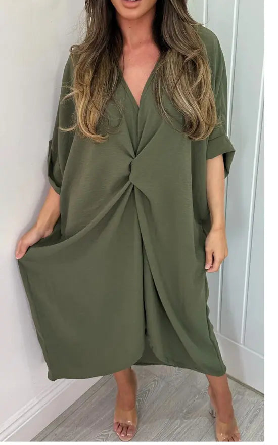 Wir freuen uns, dass Sie sich für unser kurzärmliges Maxikleid mit Knotendetail entschieden haben, denn wir lieben seinen lässigen Look! Das Kleiddesign macht es zu einer großartigen Wahl für jedes Mode-Girl.