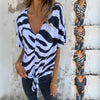 Paket enthalten: 1 * Damen V-Ausschnitt gestreift bedruckt lässig Kurzarm-Top