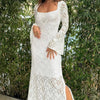 ELEGANTE SPITZENVERZIERUNG- Das gesamte Maxikleid ist mit zarter Spitze verziert, was ihm eine subtile Raffinesse verleiht und es zeitlos und romantisch wirken lässt – perfekt für besondere Anlässe und elegante Partys.