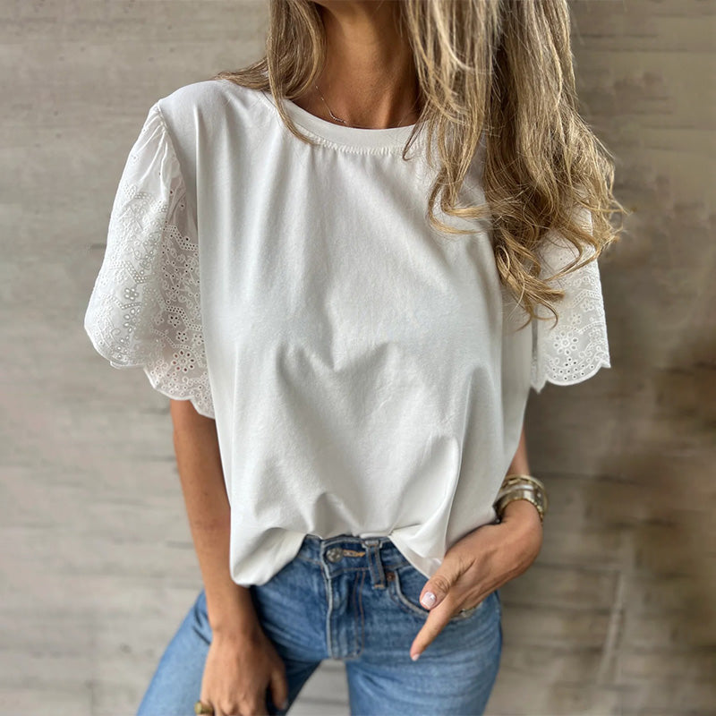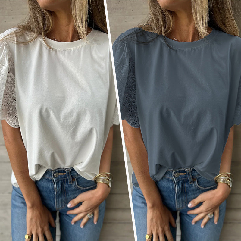 Paket beinhaltet: 1 × Damen-Kurzarm-Top mit Spitzendetail