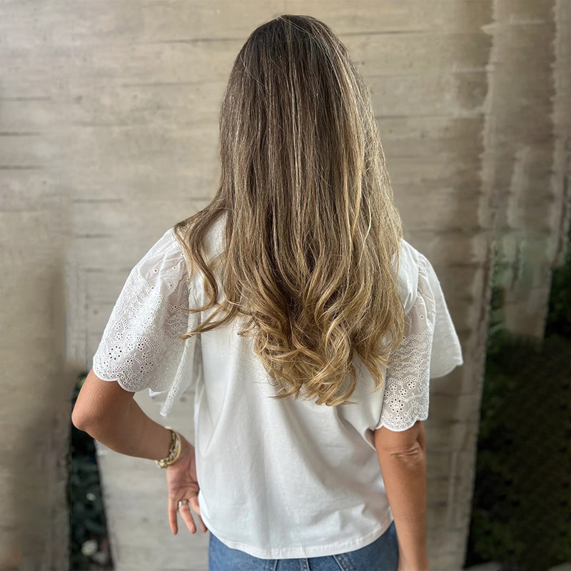 EINZIGARTIGES SPITZENÄRMELDESIGN – Die Spitzenärmel verleihen dem Oberteil eine moderne, feminine Note. Das komplizierte Design unterstreicht den schlichten Stil und macht es perfekt für legere und halbformelle Anlässe.