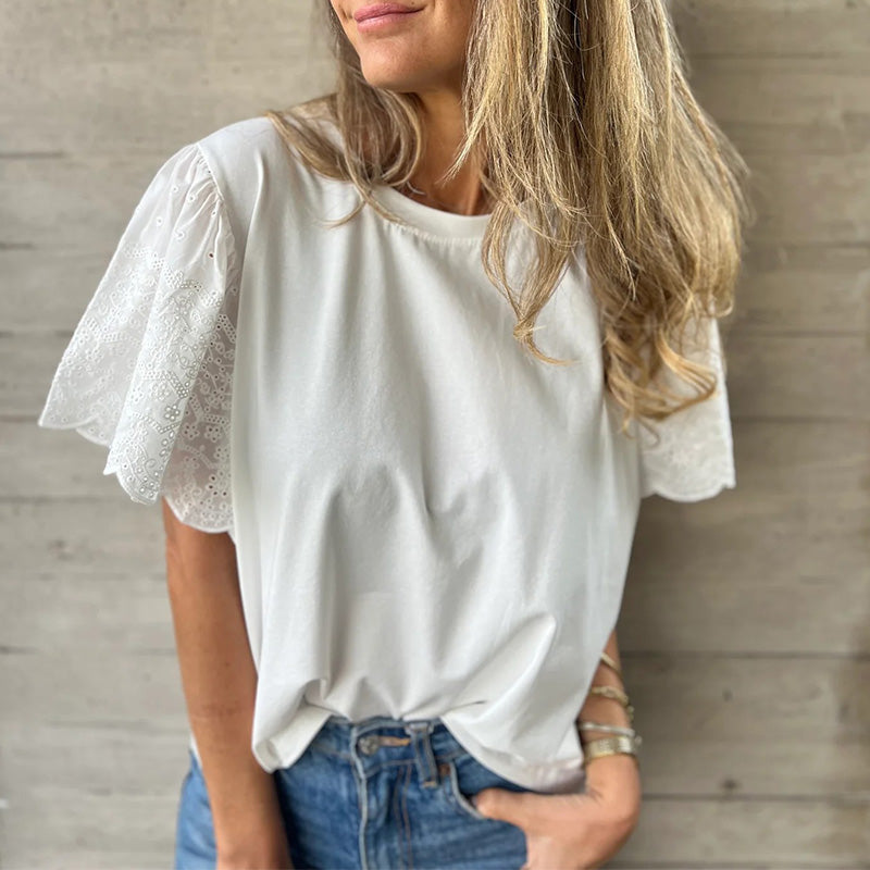 Damen-Kurzarmoberteil mit Spitzendetail