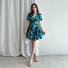 Lieferumfang: 1 x Damenkleid mit V-Ausschnitt und kurzen Ärmeln und Print in A-Linie