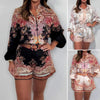 🌸Zweiteiliges Set mit modischem Print, Hemdoberteil mit Knopfleiste und Shorts mit Gürtel🌈