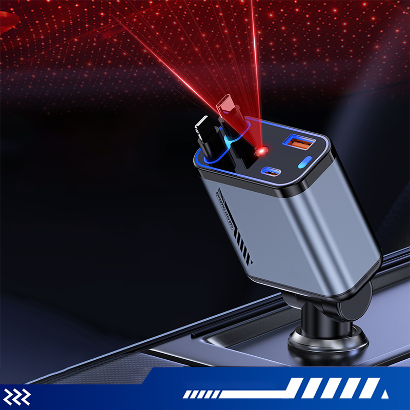 Multifunktionales Schnelllade-Autoladegerät mit einziehbarem Kabel