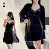 VERFÜHRERISCHES UND ZARTES DESIGN – Dieses Pyjamaoberteil ist so gestaltet, dass Sie sich gleichzeitig sexy und elegant fühlen. Der Neckholder mit tiefem V-Ausschnitt und das rückenfreie Design verleihen eine verlockende Note, während der passende Bademantel das Outfit vervollständigt und ihm einen rundum eleganten Look verleiht.