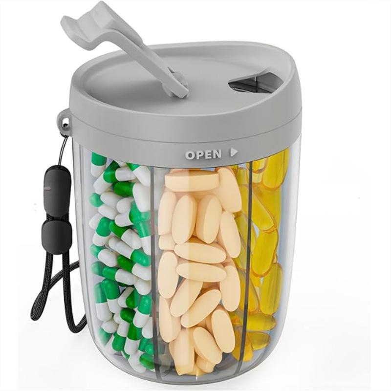 KOMPAKTES UND REISEBEREITES DESIGN: Dieser schlanke und leichte Pillenspender passt mühelos in Taschen, Handtaschen oder Hosentaschen – und ist somit ideal für Reisen, die Arbeit oder das Fitnessstudio.