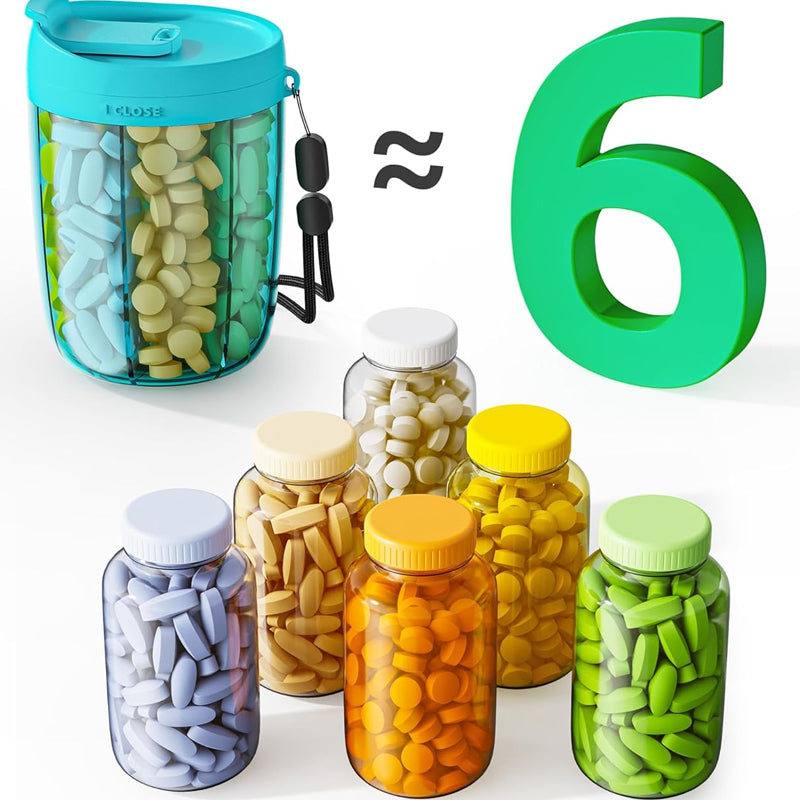 Paket beinhaltet: 1 * Pillenspenderflasche mit 6 Fächern