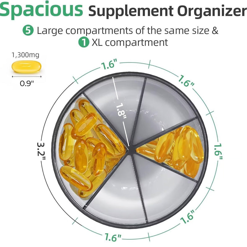 6 INTELLIGENTE FÄCHER ZUM EINFACHEN SORTIEREN: Ordnen Sie Ihre Medikamente nach Tageszeit oder Art in sechs einzelnen Abschnitten – perfekt für die Verwaltung der täglichen Dosen ohne Verwirrung oder vergessene Pillen.