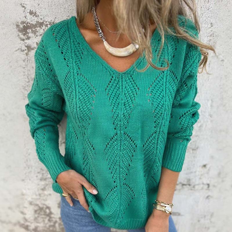 Hohlmusterdetails – Das zarte Hohlstrickmuster verleiht dem Pullover Raffinesse und Atmungsaktivität. Es bietet einen stilvollen, strukturierten Look und sorgt gleichzeitig für Komfort und eignet sich sowohl für warme als auch für kühle Umgebungen. Das einzigartige Designelement wertet das Gesamtbild auf und verbindet Eleganz mit Alltagstauglichkeit.