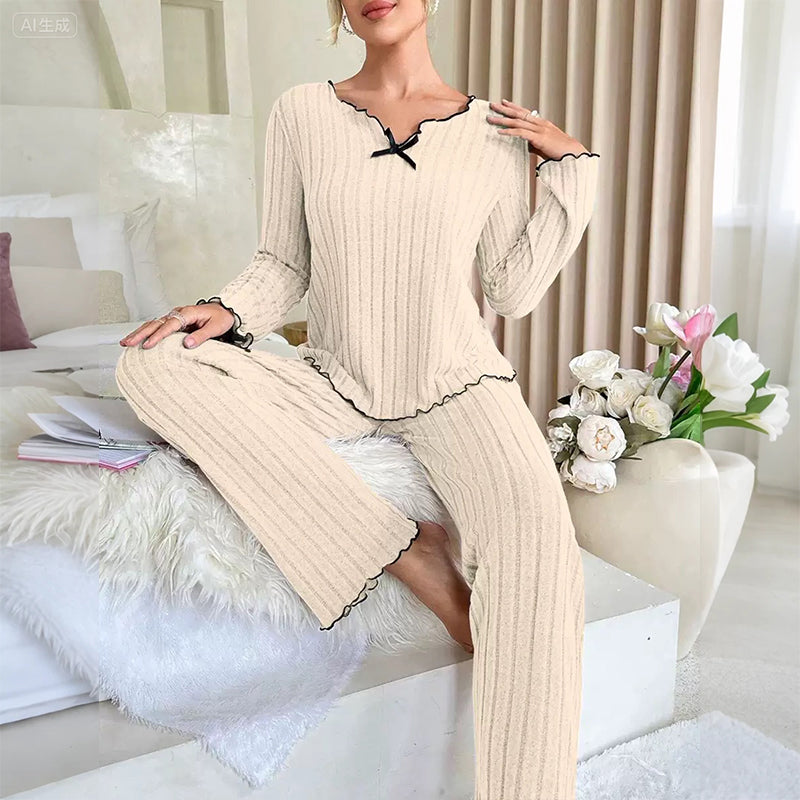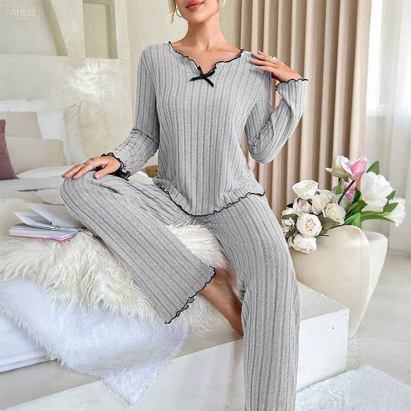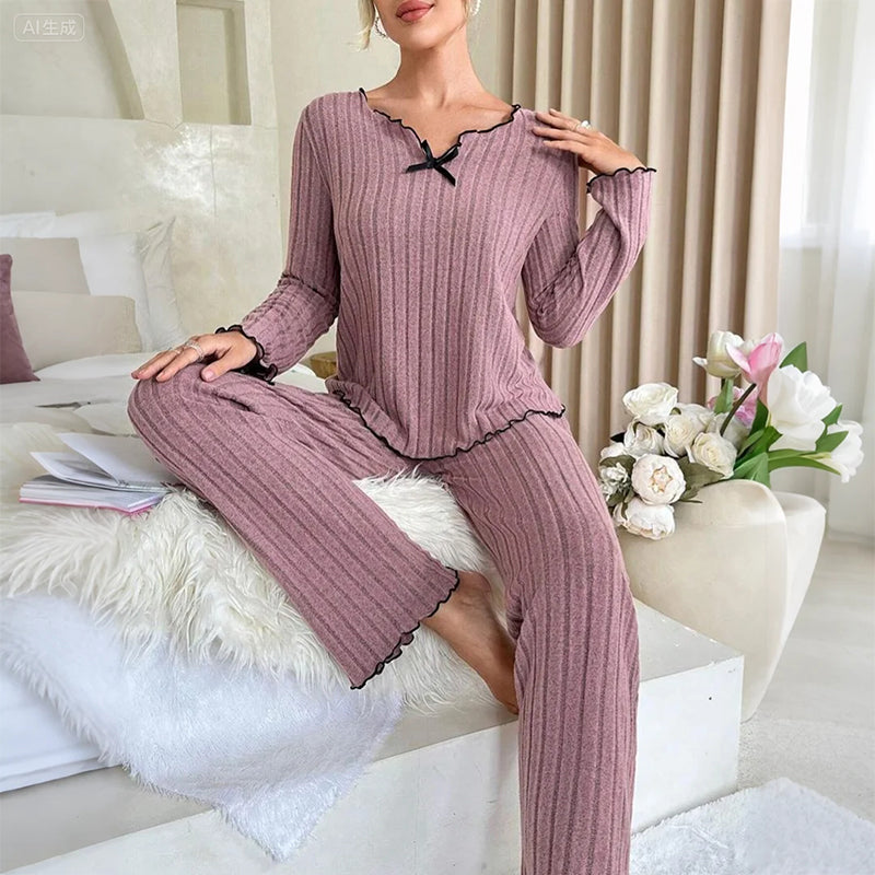 ELEGANTER RÜSCHENBESATZ : Zarte, kontrastierende Rüschenbesätze an Ausschnitt, Bündchen und Saum verleihen einen Hauch femininen Charmes. Dieses subtile und dennoch stilvolle Detail wertet Ihre Loungewear auf und sorgt dafür, dass Sie sich mühelos schick und gepflegt fühlen.