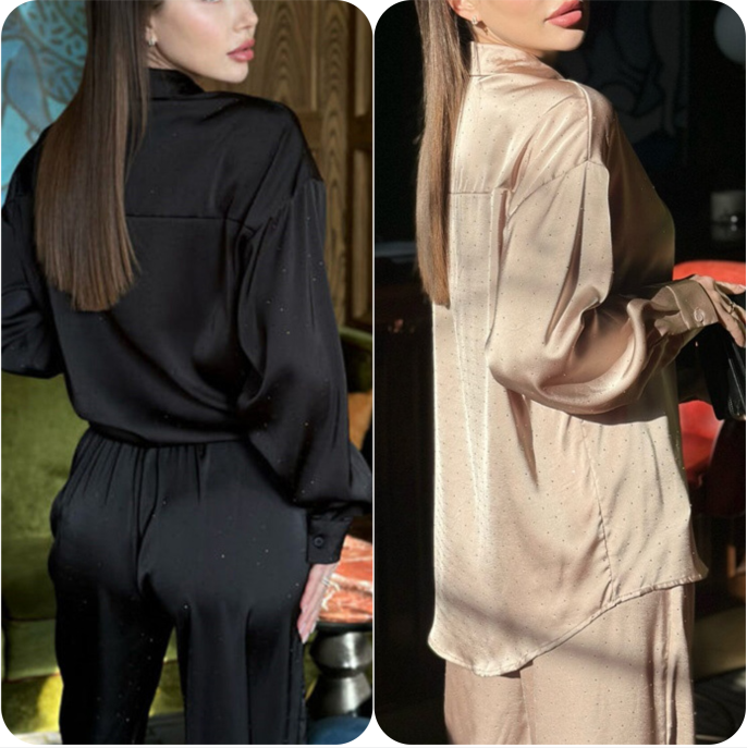 Lieferumfang: 1 elegantes Damen-Set aus Top und Hose mit weitem Bein