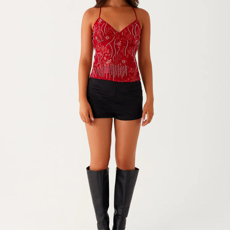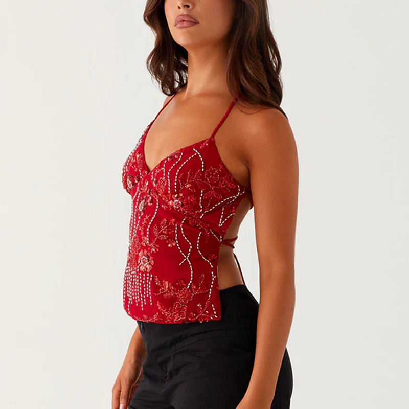 Paket beinhaltet: 1 * Sexy besticktes kurzes Camisole mit Pailletten