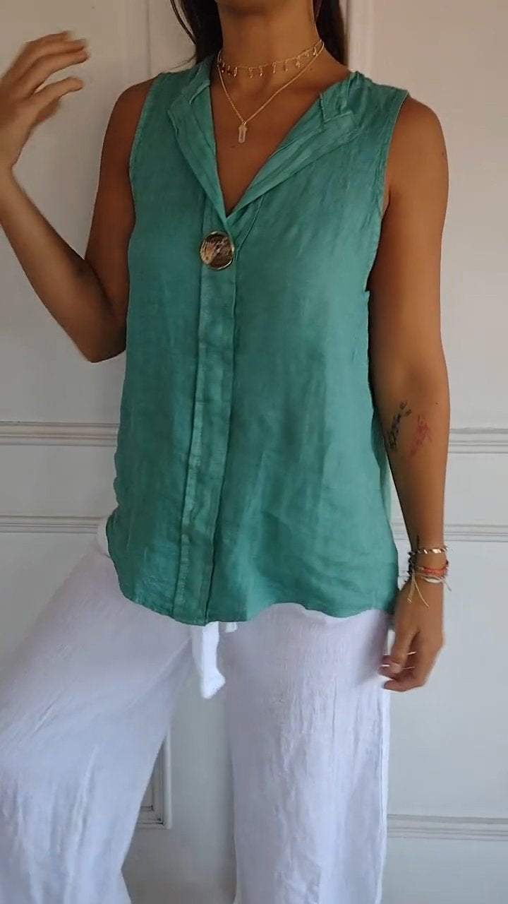 👚Das lässige ärmellose Damen-Top mit V-Ausschnitt ist ein unverzichtbares Kleidungsstück für moderne Frauen, die sowohl Stil als auch Komfort suchen.