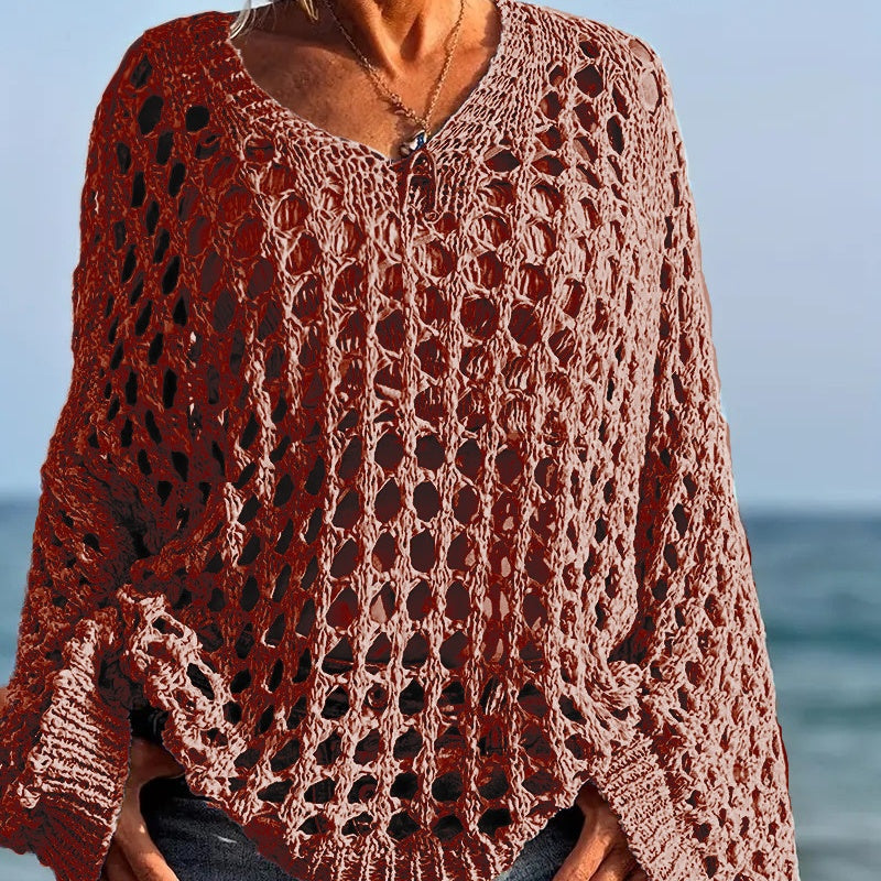 Lieferumfang: 1 x lĂ€ssiges, einfarbiges HĂ€kel-Strickoberteil fĂŒr Damen