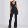 Unifarbener tief ausgeschnittener dehnbarer ärmelloser Jumpsuit