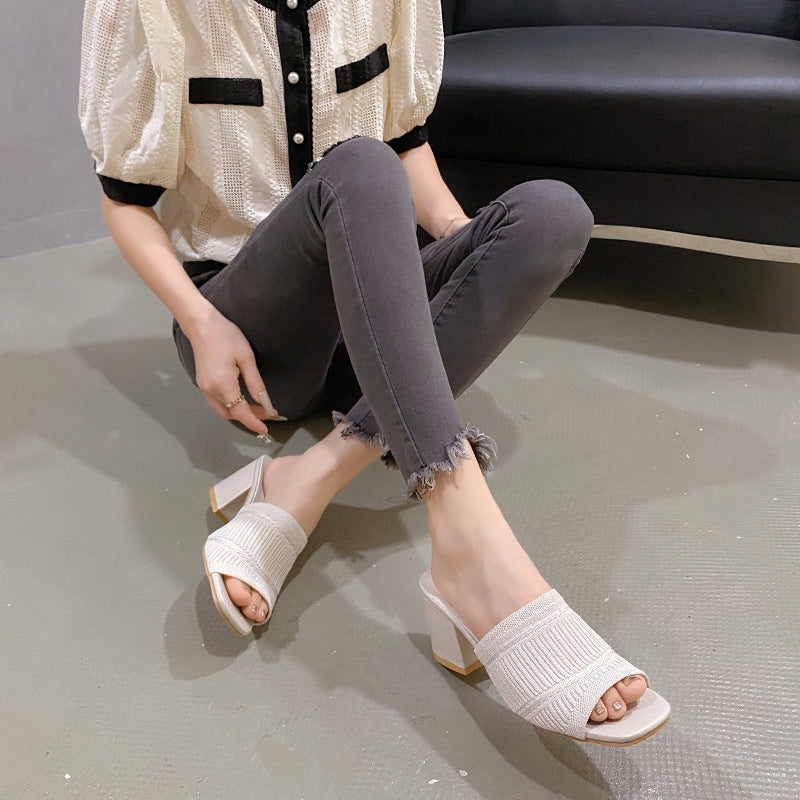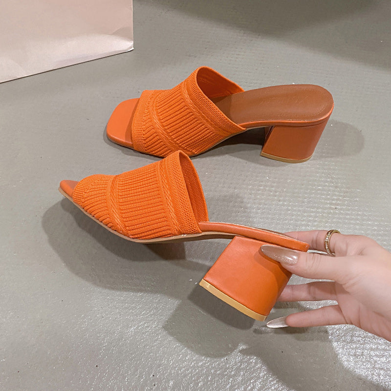 Strick-Sandalen mit eckiger Zehenpartie, offener Zehenpartie und mittelhohem Absatz