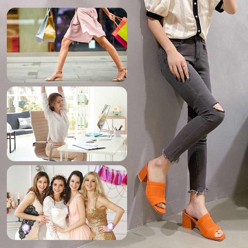 Stützen Sie Ihre Fußgewölbe mit einem kontrollierten mittleren Absatz – Die mittlere Absatzhöhe sorgt für eine korrekte Fußausrichtung und verhindert gleichzeitig die Belastung durch flache Sandalen. Die abgewinkelte Neigung verteilt das Gewicht gleichmäßig und macht diese Schuhe ideal für den ganzen Tag, egal ob Sie von zu Hause aus arbeiten oder Hausarbeiten erledigen.