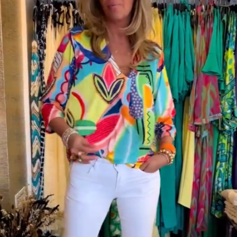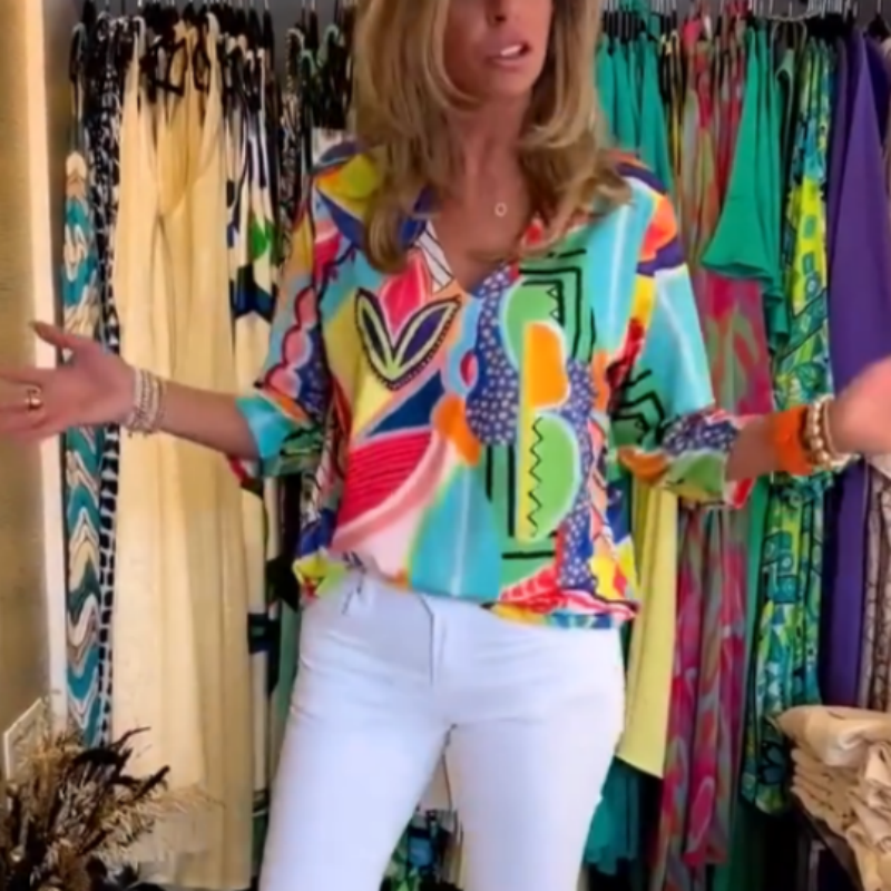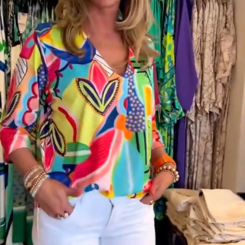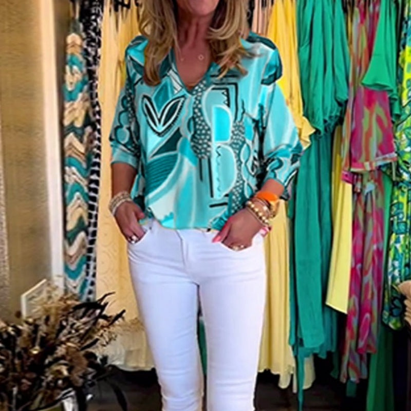 Lieferumfang: 1 x Damen-Oberteil mit V-Ausschnitt und lässigem, trendigem Aufdruck.