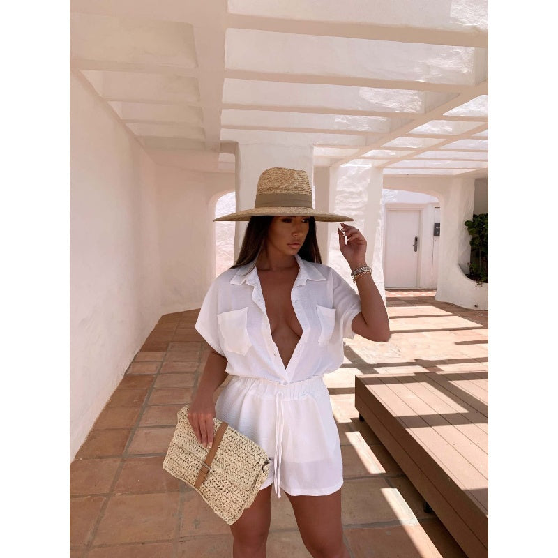 V-AUSSCHNITT-DESIGN – Stilvoll und bequem : Dieses zweiteilige Loungewear-Set verfügt über einen tiefen V-Ausschnitt mit einer Knopfreihe und eine entspannte Silhouette, die jeder Figur schmeichelt. Zwei Brusttaschen vorne sorgen für einen funktionalen und modischen Touch. Die atmungsaktiven kurzen Ärmel und die weichen Linien schaffen ein stilvolles und dennoch lässiges Alltagsoutfit, das sich zum Entspannen oder Ausgehen eignet.