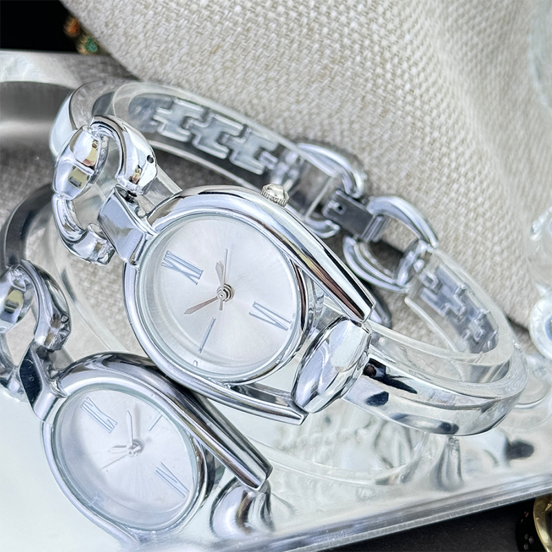 DECODING TIME WITH GLAMOUR - A clean, uncluttered face adorned with classic Roman numerals ensures effortless readability. The contrast between the dial and hands enhances visibility in any lighting, while the minimalist layout adds a touch of refined sophistication.