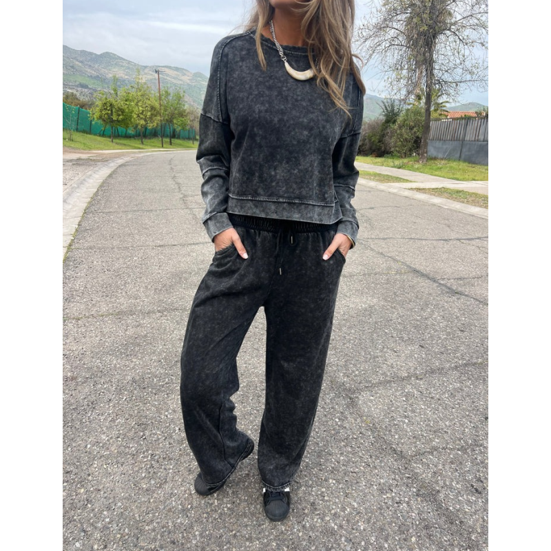 Set mit Vintage-Waschung – Cropped Hoodie und Hose