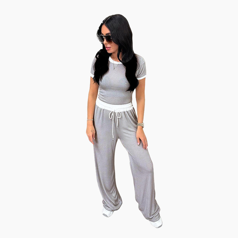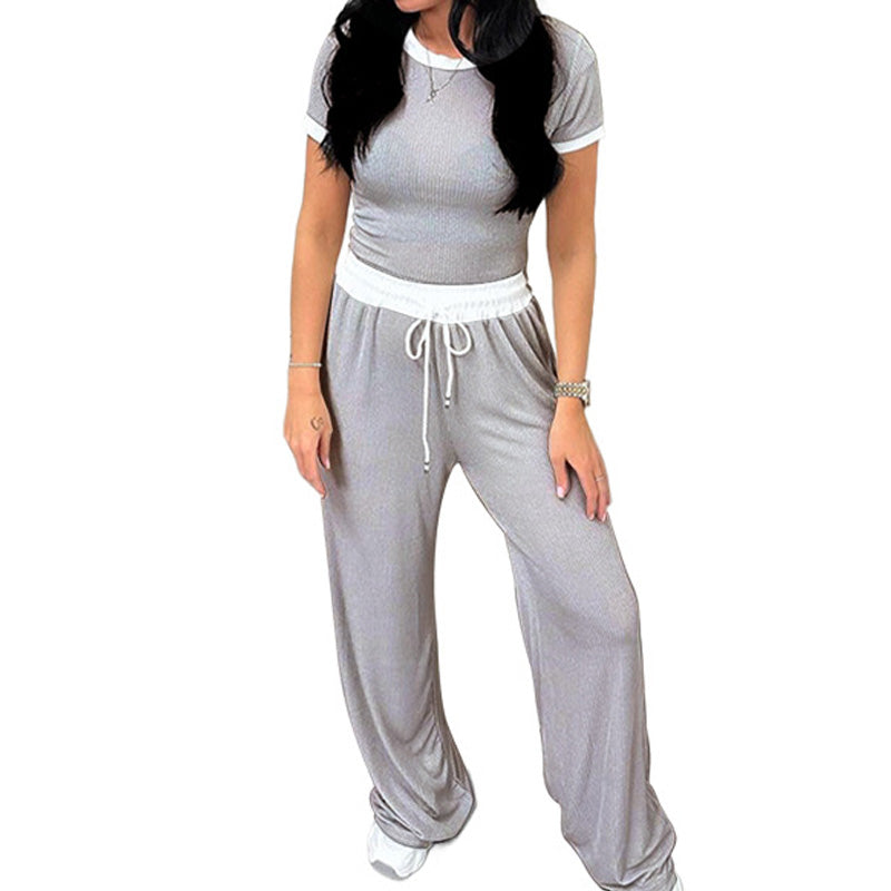 Lieferumfang:1*Geripptes Damen Lounge Set mit Crop Top Weit geschnittene Hose