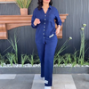 Paket beinhaltet: 1 * Damen Casual Loose Langarmshirt High Waist Split Wide Leg Pants Set